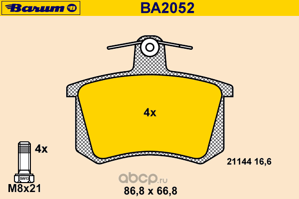 BARUM | BA2104 | Комплект тормозных колодок, дисковый тормоз | |