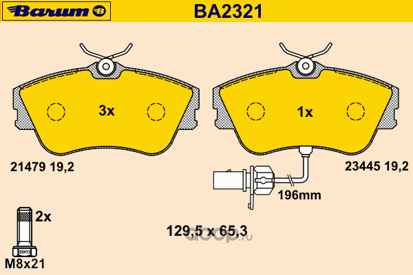| BARUM | BA2321 | Комплект тормозных колодок, дисковый тормоз | ||