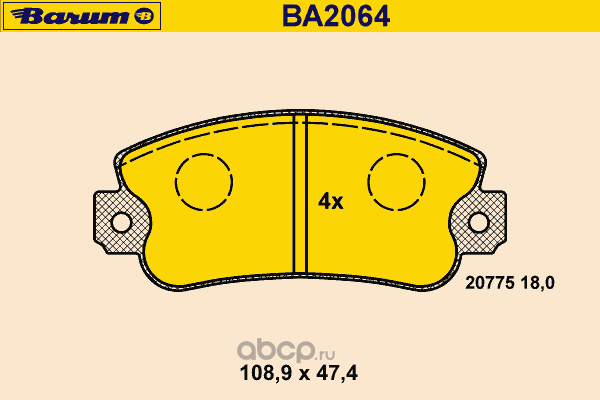 | BARUM | BA2064 | Комплект тормозных колодок, дисковый тормоз | ||