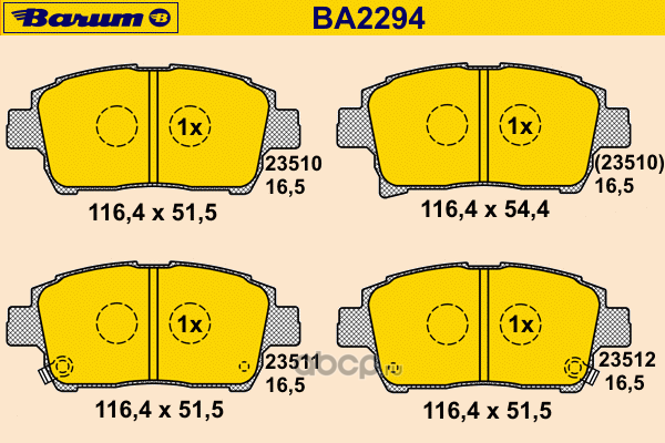 | BARUM | BA2294 | Комплект тормозных колодок, дисковый тормоз | ||