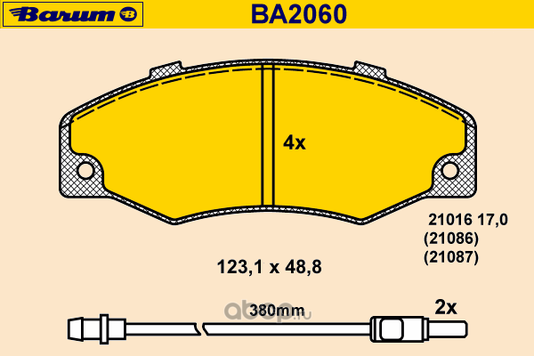 | BARUM | BA2060 | Комплект тормозных колодок, дисковый тормоз | ||