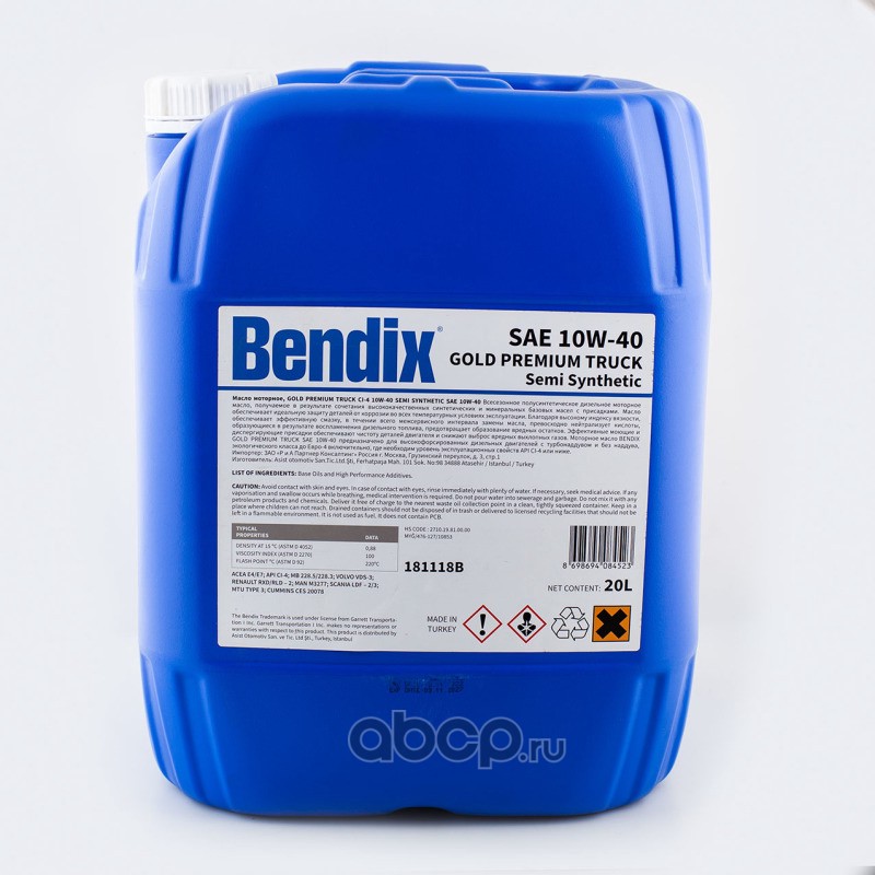 BENDIX 181118B Масло моторное полусинтетика BENDIX GOLD PREMIUM TRUCK 10W-40 20 л.