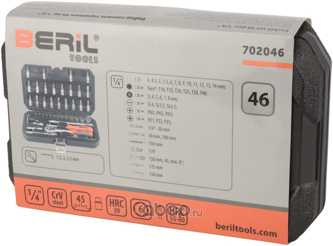 | BERiL TOOLS | 702046 | набор головок торцевых 46пр. 1/4"DR | ||