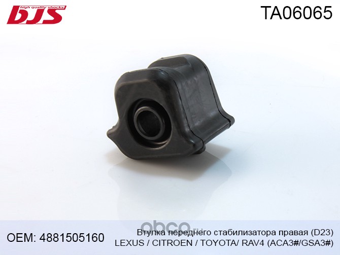 | BJS | TA06065 | Втулка переднего стабилизатора правая d23 TOYOTA/LEXUS/CITROEN RAV4 ACA3#/GSA3# 2005- | ||