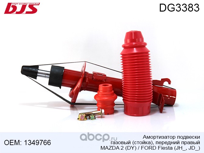 | BJS | DG3383 | Амортизатор подвески газовый(стойка), передний правый MAZDA2 (DY) FORD Fiesta(JH_, JD_)-01 | ||