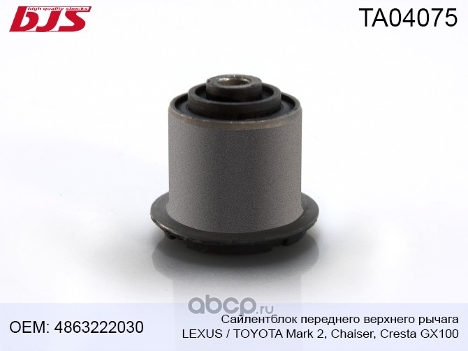| BJS | TA04075 | Сайлентблок переднего верхнего рычага TOYOTA/LEXUS MARK 2/CHAISER/CRESTA GX100 1996-2001 | ||