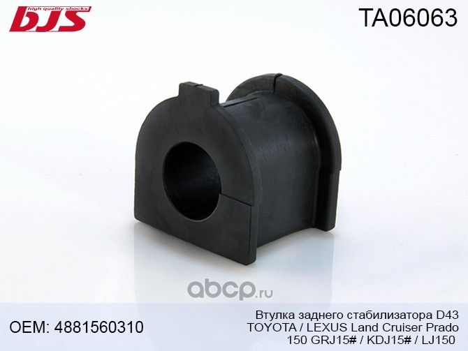 | BJS | TA06063 | Втулка переднего стабилизатора D43 TOYOTA/LEXUS LAND CRUISER PRADO 150 GRJ15#/KDJ15#/LJ150/ | ||