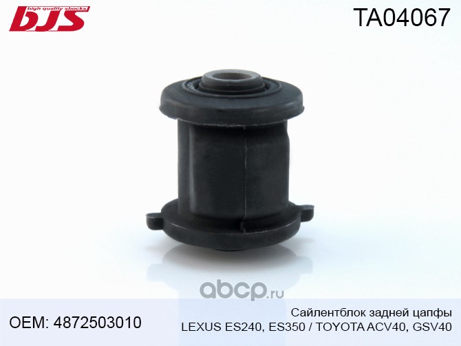 | BJS | TA04067 | Сайлентблок задней цапфы TOYOTA/LEXUS ES240/ES350 ACV40/GSV40 2006- | ||