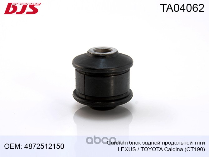 | BJS | TA04062 | Сайлентблок задней продольной тяги TOYOTA/LEXUS CALDINA CT190 1992-1996 | ||