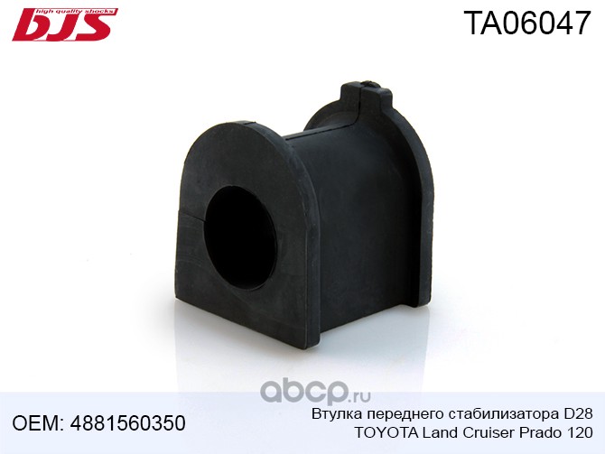 | BJS | TA06047 | Втулка переднего стабилизатора D28 TOYOTA LAND CRUISER PRADO 120 2002-2009 | ||