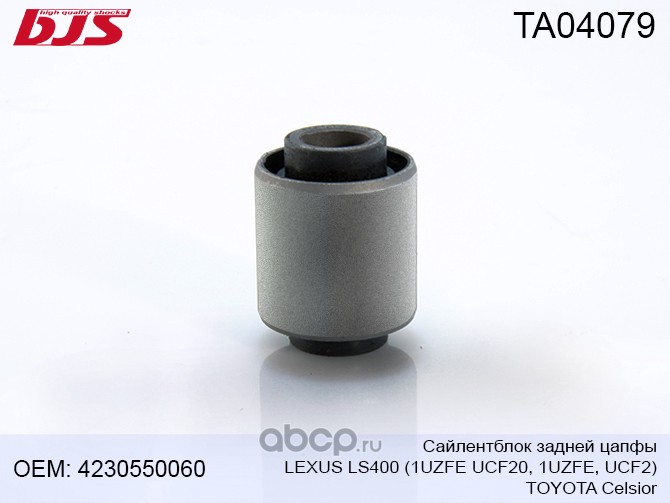 | BJS | TA04079 | Сайлентблок задней цапфы LEXUS LS400 1UZFE UCF20 CELSIOR 1UZFE UCF2 | ||
