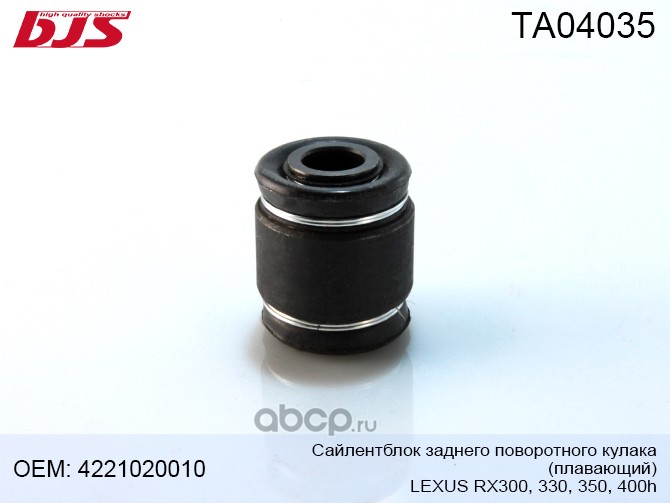 | BJS | TA04035 | Сайлентблок заднего поворотного кулака(плавающий) Lexus RX300/330/350/400h | ||