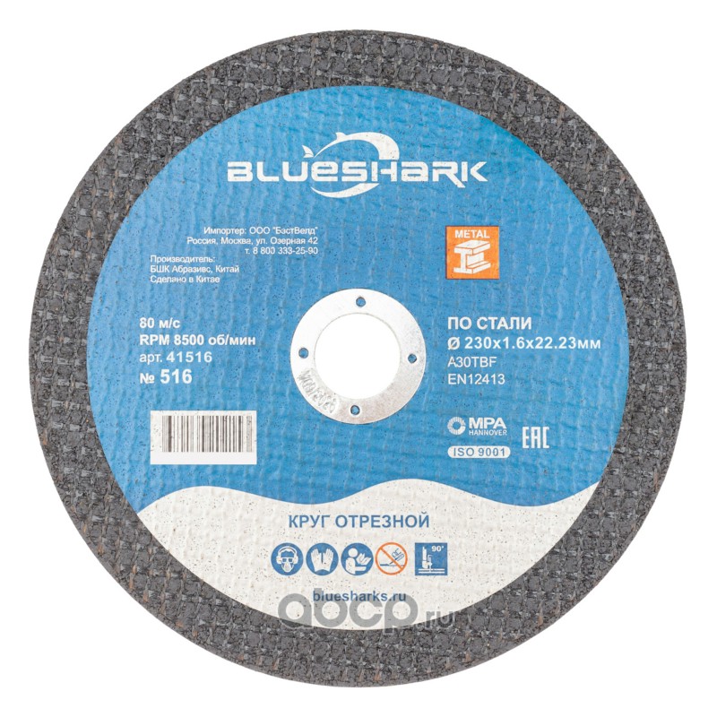 | BLUESHARK | 41516 | Круг отрезной по стали № 516, 230*1,6*22 мм | ||