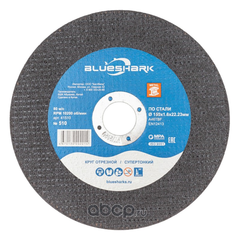 | BLUESHARK | 41510 | Круг отрезной по стали № 510, 150*1,6*22 мм | ||