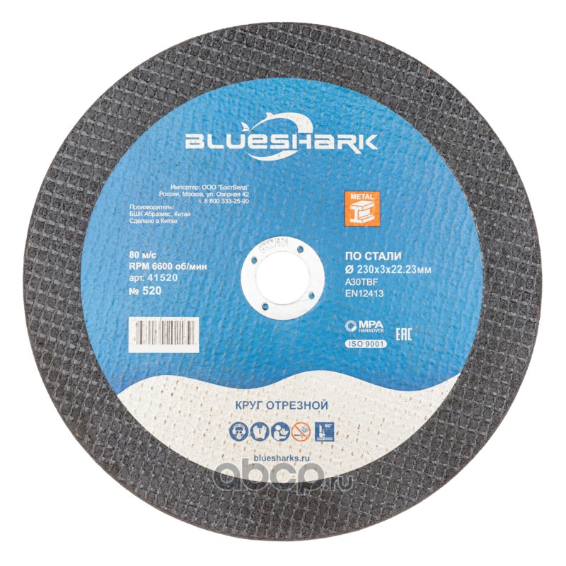 | BLUESHARK | 41520 | Круг отрезной по стали № 520, 230*3*22 мм | ||