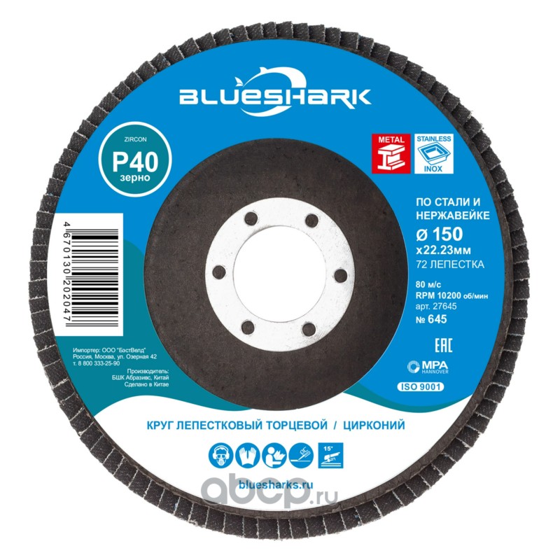 | BLUESHARK | 27645 | Круг лепестковый торцевой 125 мм/P60 КЛТ № 645 | ||