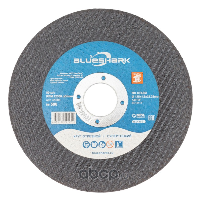 | BLUESHARK | 41506 | Круг отрезной по стали № 506, 125*1,6*22 мм | ||