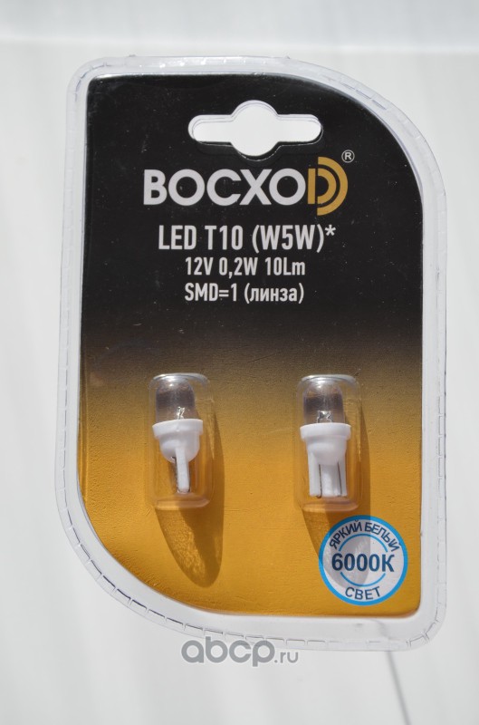 | BOCXOD | 89207PG | Лампа светодиодная ВОСХОD T10 W2.1x9.5d 12V 1W 1 шт. | ||