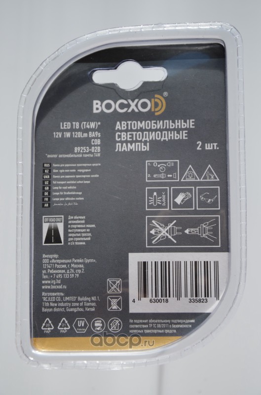 | BOCXOD | 8925302B | Светодиод LED COB 6000k Т8 аналог T4W 12V 1W 120LM БЛИСТЕР | ||