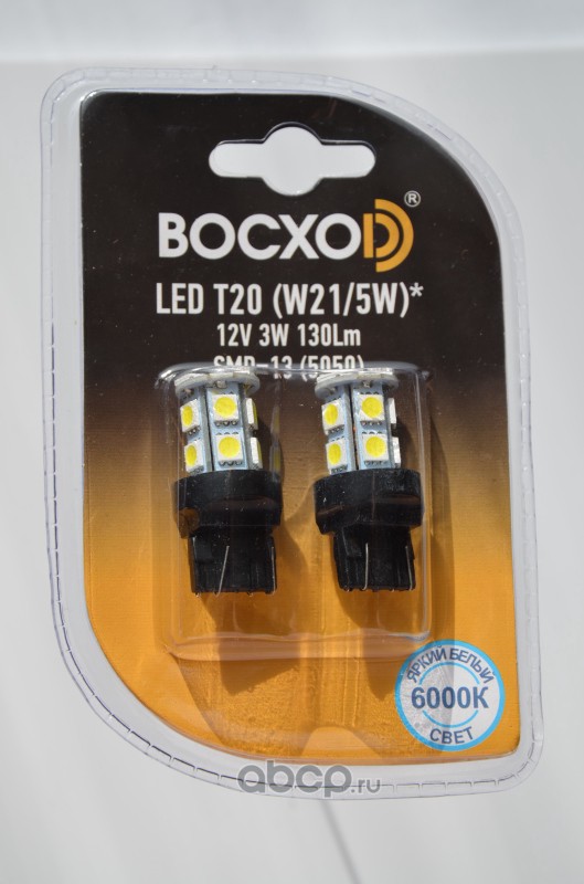 | BOCXOD | 8996402B | Светодиод LED SMD=13 (5050) 6000k Т20 аналог W21/5W 12V 3W 130LM БЛИСТЕР | ||