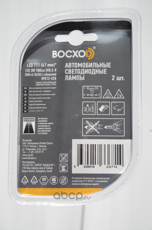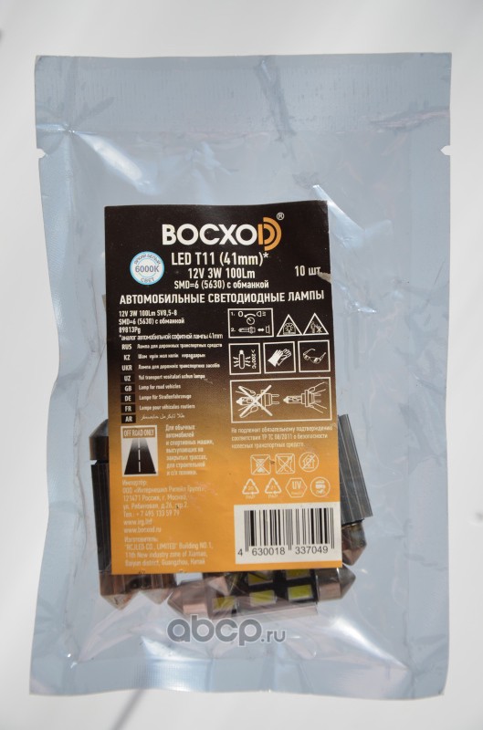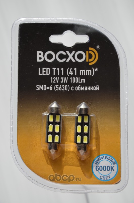 | BOCXOD | 8981302B | Светодиод LED SMD=6 (5630) с обманкой 6000k Т11 41 мм 12V 3W 100LM БЛИСТЕР | ||