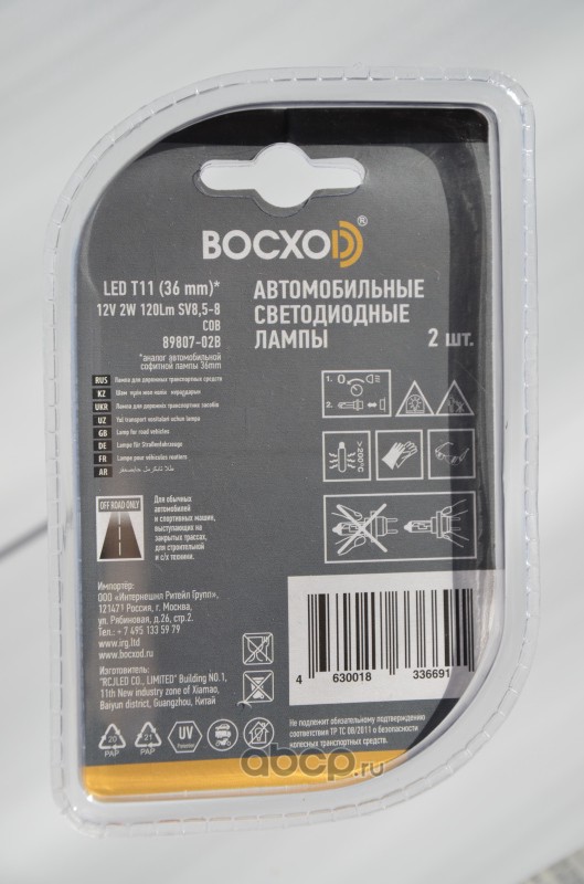 | BOCXOD | 8980702B | Светодиод LED COB 6000k Т11 36mm 12V 2W 120LM БЛИСТЕР | ||