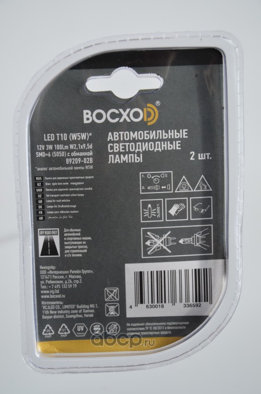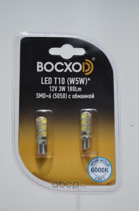 | BOCXOD | 8920902B | Светодиод LED SMD=6 (5050) сил.с обманк. 6000k Т10 аналог W5W 12V 3W 180LM блистер | ||