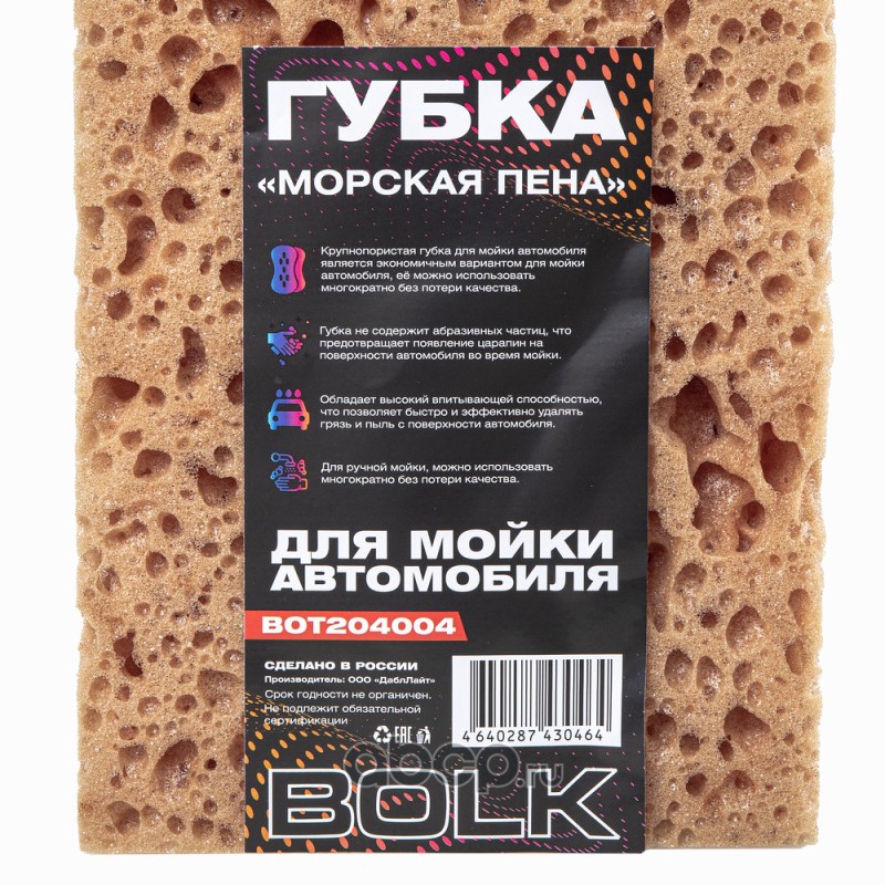 | BOLK | BOT204004 | Губка для мытья автомобиля крупнопористая Морская пена | ||