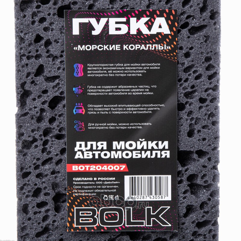 | BOLK | BOT204007 | Губка для мытья автомобиля крупнопористая Морские кораллы | ||