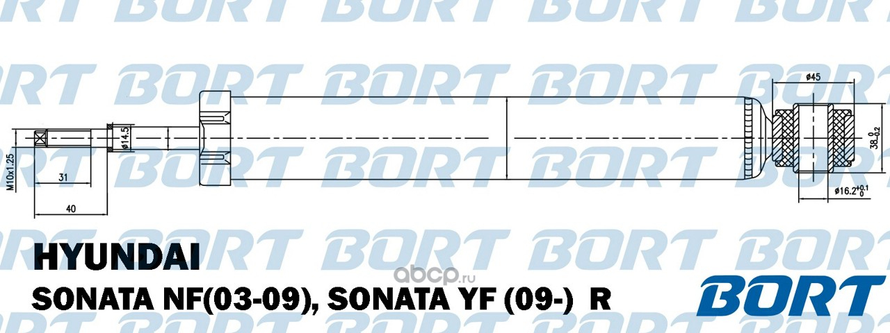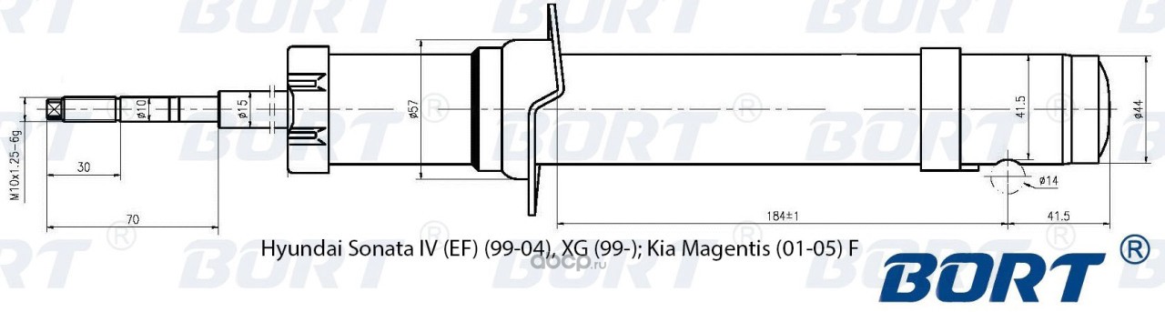 | BORT | G41545002 | Стойка амортизационная газомасляная передняя для Hyundai Sonata IV (EF) (99-04), XG (99-); Kia Magentis (01-05) F | ||