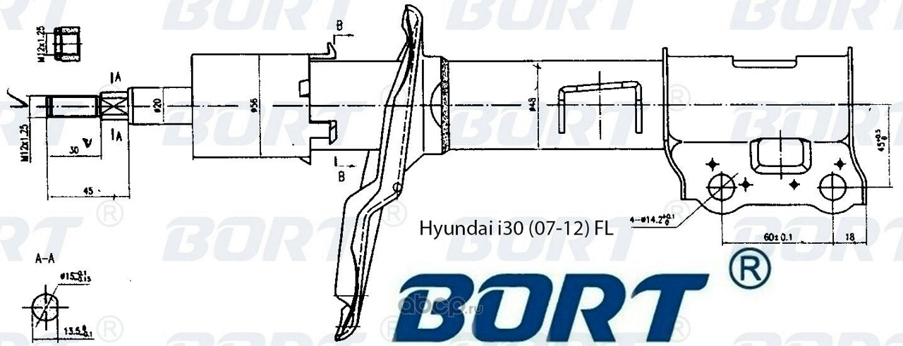 | BORT | G22048035L | Стойка амортизационная газомасляная передняя левая для Hyundai i30 (07-12) FL | ||