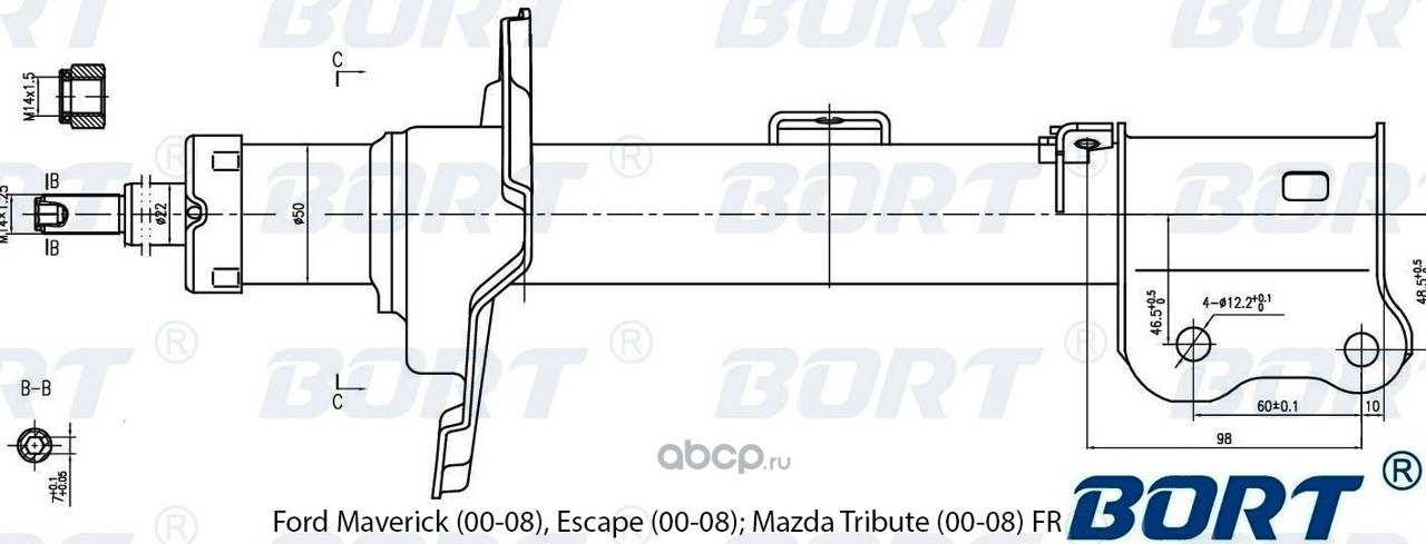 | BORT | G22250191R | Стойка амортизационная газомасляная передняя правая для Ford Maverick (00-08), Escape (00-08); Mazda Tribute (00-08) FR | ||