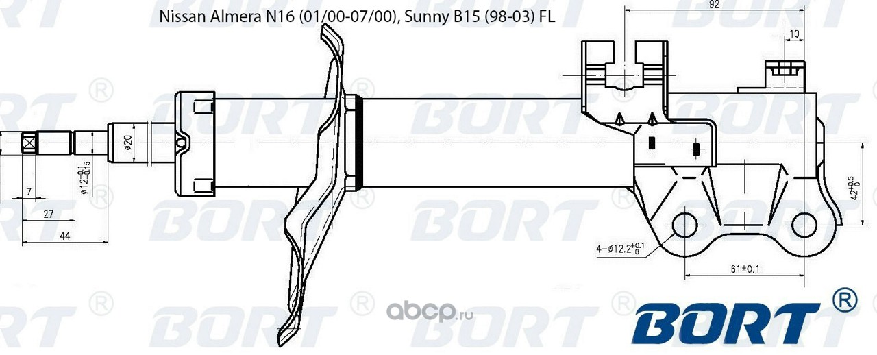 | BORT | G22045081L | Стойка амортизационная газомасляная передняя левая для Nissan Almera N16 (01/00-07/00), Sunny B15 (98-03) FL | ||