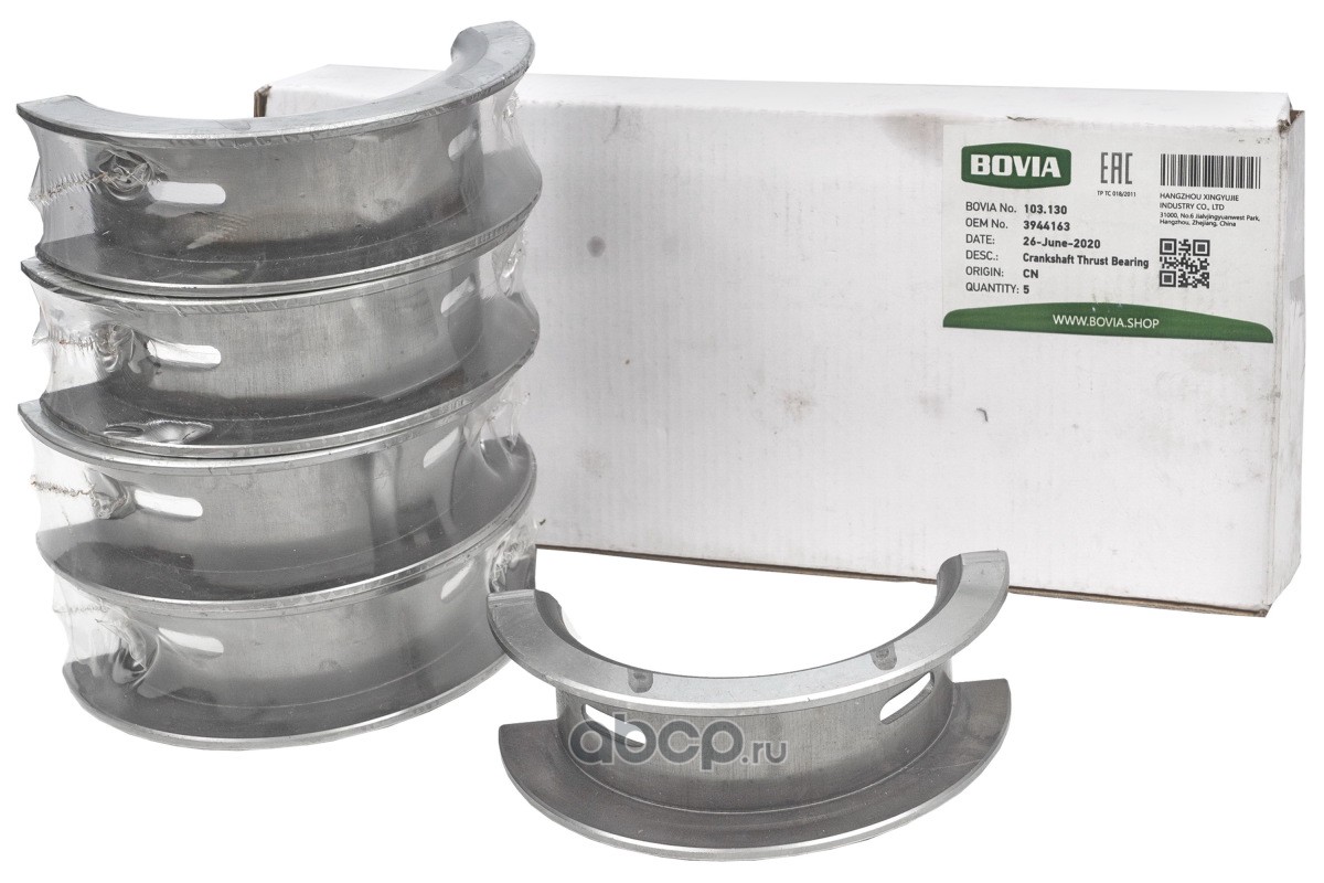 | BOVIA | 103130 | Вкладыш коленвала упорный верхний стандарт (BOVIA, Китай) | ||