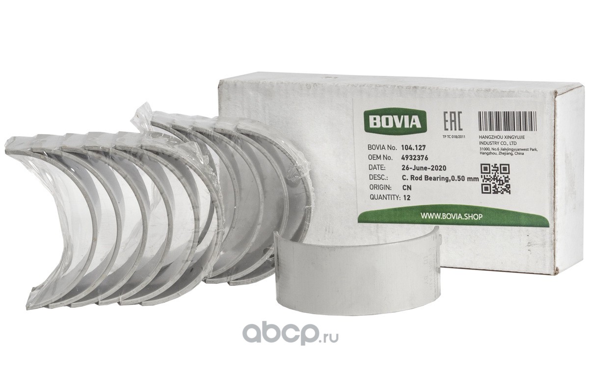 | BOVIA | 104127 | Вкладыш коленвала шатунный верхний ремонт. (0.5 мм) (BOVIA, Китай) | ||
