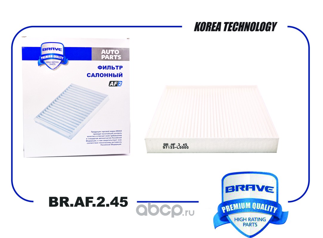 | BRAVE | BRAF245 | Фильтр салонный BR.AF.2.45 97133-L0000 HYUNDAI Sonata DN8 20-, KIA K5 DL3 20-, Sorento MQ 20- | ||