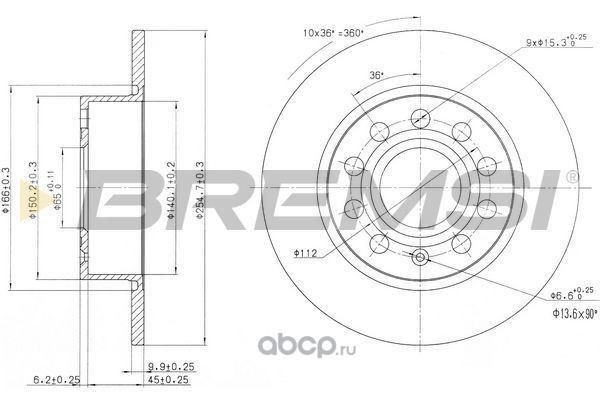| BREMSI | DBB223V | Тормозной диск | ||