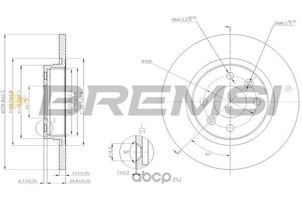 | BREMSI | DBB502S | Тормозной диск | ||