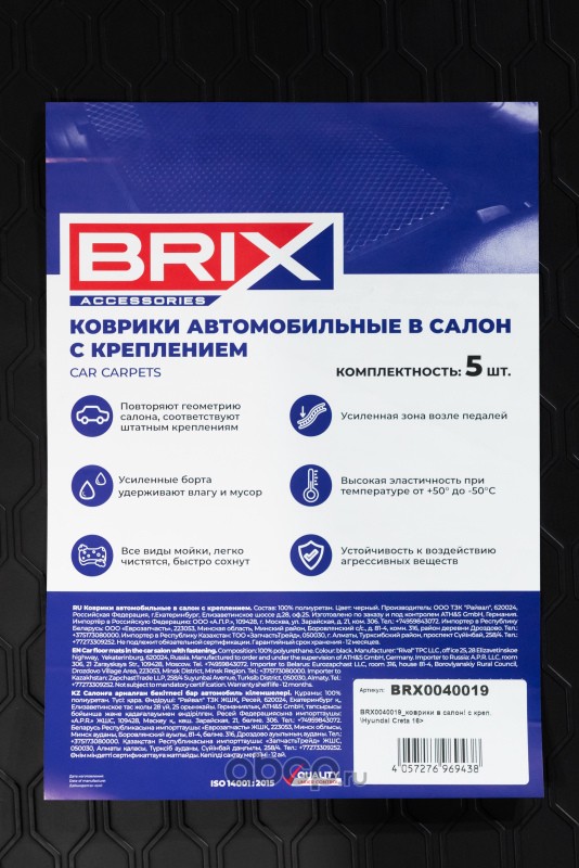 | BRIX | BRX0040019 | коврики в салон! (полиуретан) с креп.Hyundai Creta 16> | ||