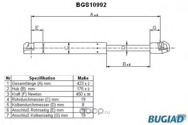 | BUGIAD | BGS10992 | Упругий элемент, крышка багажника / помещения для груза | ||