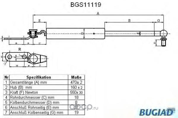| BUGIAD | BGS11119 | Упругий элемент, крышка багажника / помещения для груза | ||