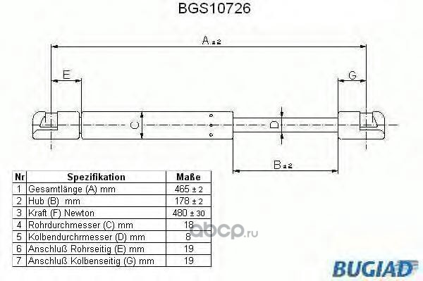 | BUGIAD | BGS10726 | Упругий элемент, крышка багажника / помещения для груза | ||