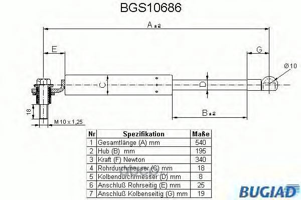| BUGIAD | BGS10686 | Упругий элемент, крышка багажника / помещения для груза | ||