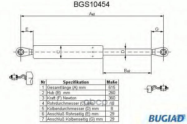| BUGIAD | BGS10454 | Упругий элемент, крышка багажника / помещения для груза | ||