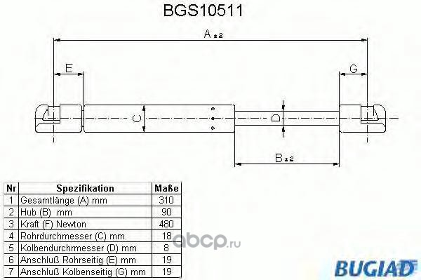 | BUGIAD | BGS10511 | Упругий элемент, крышка багажника / помещения для груза | ||