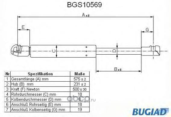 | BUGIAD | BGS10569 | Упругий элемент, крышка багажника / помещения для груза | ||