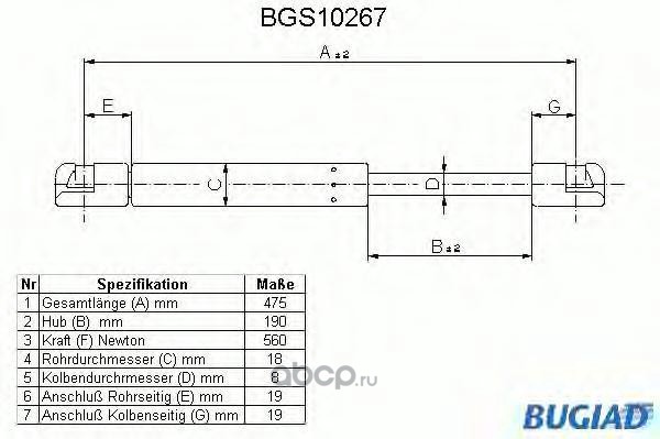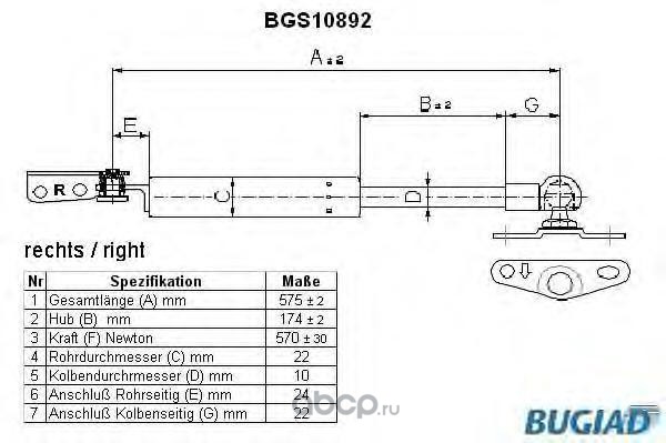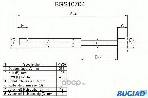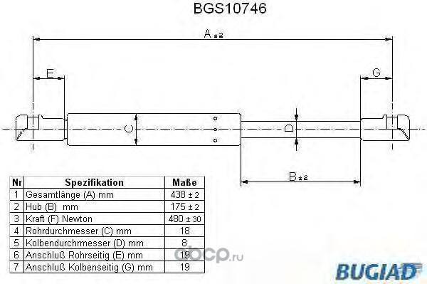 | BUGIAD | BGS10704 | Упругий элемент, крышка багажника / помещения для груза | ||