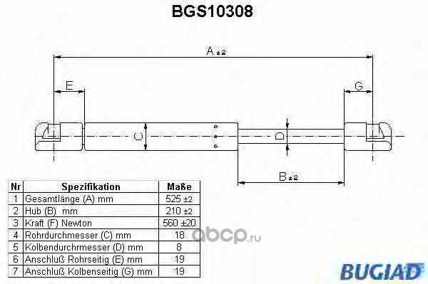 | BUGIAD | BGS10308 | Упругий элемент, крышка багажника / помещения для груза | ||