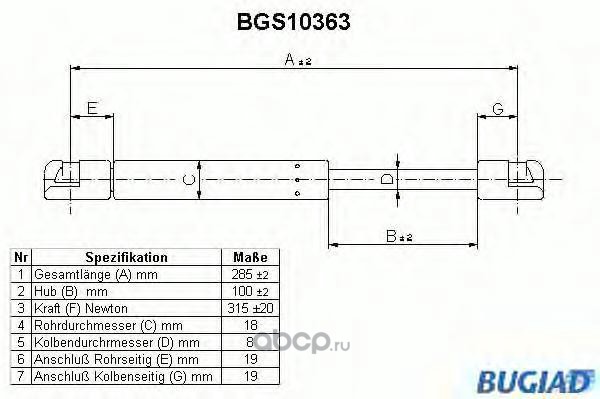 | BUGIAD | BGS10363 | Упругий элемент, крышка багажника / помещения для груза | ||