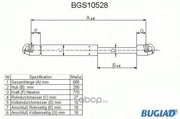 | BUGIAD | BGS10528 | Упругий элемент, крышка багажника / помещения для груза | ||